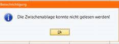 Wenn in der Berechnung in die Zwischenablage kopiert wird, in PROFLEX importiere, kommt die Meldung