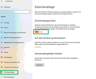 Systemeinstellungen war die Zwischenablage, der Zwischenablageverlauf deaktiviert.