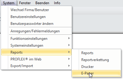 System -> Reports -> E-PaperIst hier mindestens 1 Datensatz vorhanden? (Im Bild gibt es nur die Vorlage mit der Nummer 1)