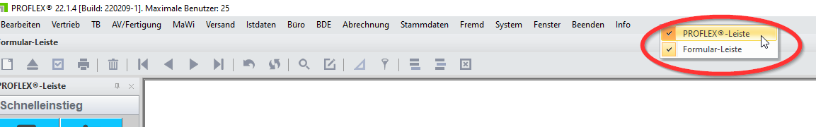 PROFLEX Leiste/Formular-Leiste: Die Leisten sind nicht mehr vorhanden