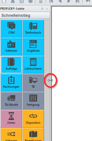 Über das Nadelsymbol in der Ecke der jeweiligen Leisten können diese ausgeblendet werden. Die Leiste wird eingeblendet sobald die Maus über den Button PROFLEX-Leiste oder Formular-Leiste gehalten wird.