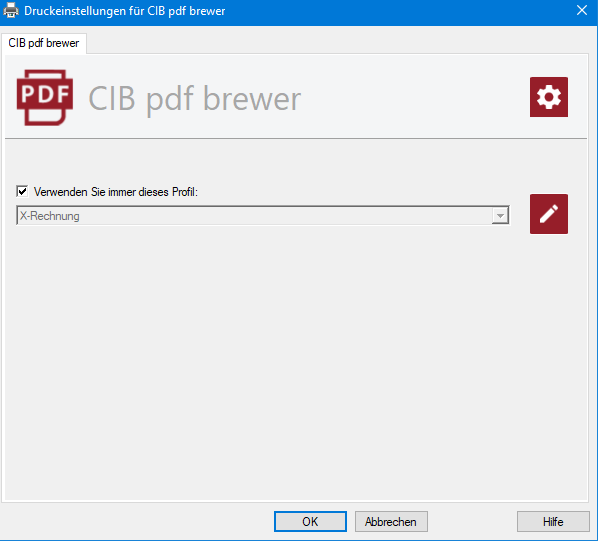 Der Druckertreiber CIB pdf brewer muss erworben und installiert sein (https://pdfbrewer.cib.de).