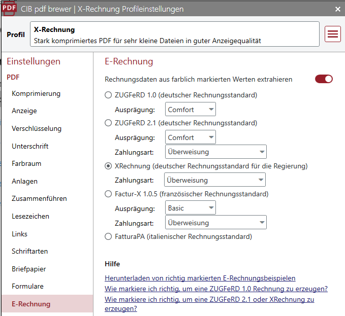 Einstellungen PDF | E-Rechnung: