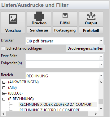 Wie gewohnt die zu druckende Rechnung öffnen und in den Druckdialog wechseln.