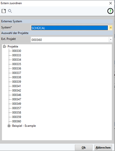 Im Angebots- oder Auftragskopf die Funktion Externe Zuordnung wählen und die Schücal Projektnummer zuordnen.