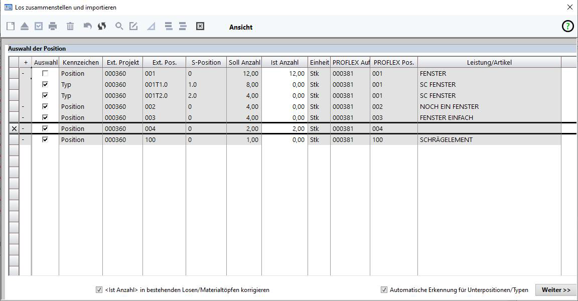 Diese Funktion wird verwendet, wenn die Losbildung aus PROFLEX® heraus