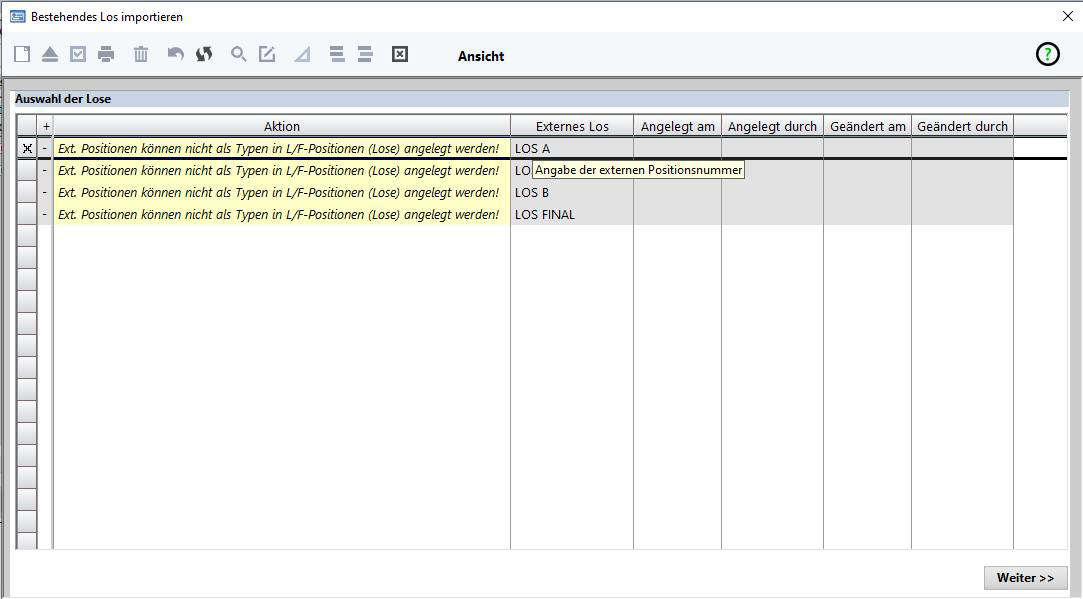 Es stehen zusätzliche Datenbereiche zur Verfügung, die beim Import berücksichtigt werden können. Somit können die Fertigungslose besser für den weiteren Fertigungsablauf genutzt werden.
