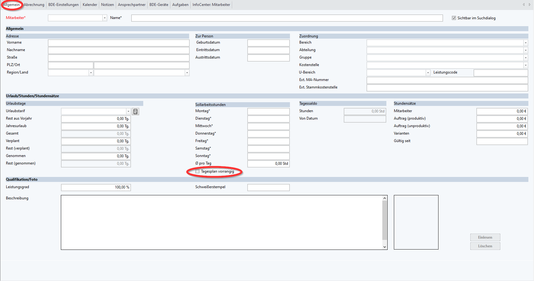 Im Mitarbeiterstamm ist der Haken Tagesplan vorrangig gesetzt, dieser muss entfernt werden.