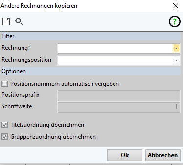 Übernahme aus Rechnungsposition(en)
