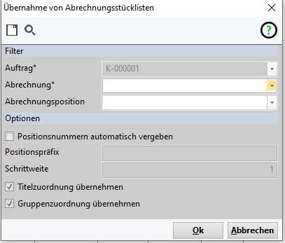 Büro | Fakturierung | Rechnungen | Positionen - Werkzeug - Übernahme von Abrechnungsstücklisten