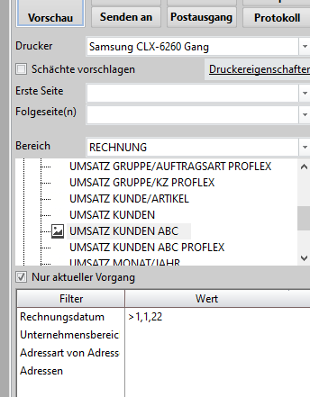 Hier die Liste Umsatz Kunden ABC unter Auswertungen
