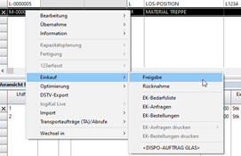 Die Weitergabe an den Einkauf erfolgt im Dialog mit der Funktion <Einkauf>