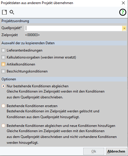 Projektdaten aus anderem Projekt übernehmen | ![]() |