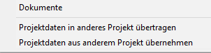 Mit den Funktionen ist es möglich, die Projektdaten in andere Projekte zu übernehmen